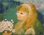2012schilderij van een jonge vrouw met margrieten geïnspireerd door Renoir